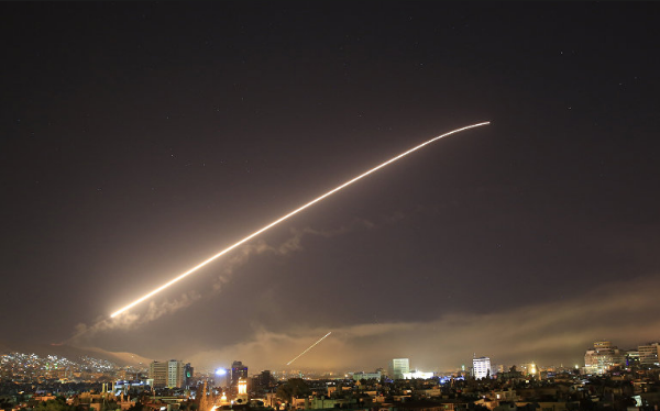 14日凌晨,导弹飞过叙利亚首都大马士革上空