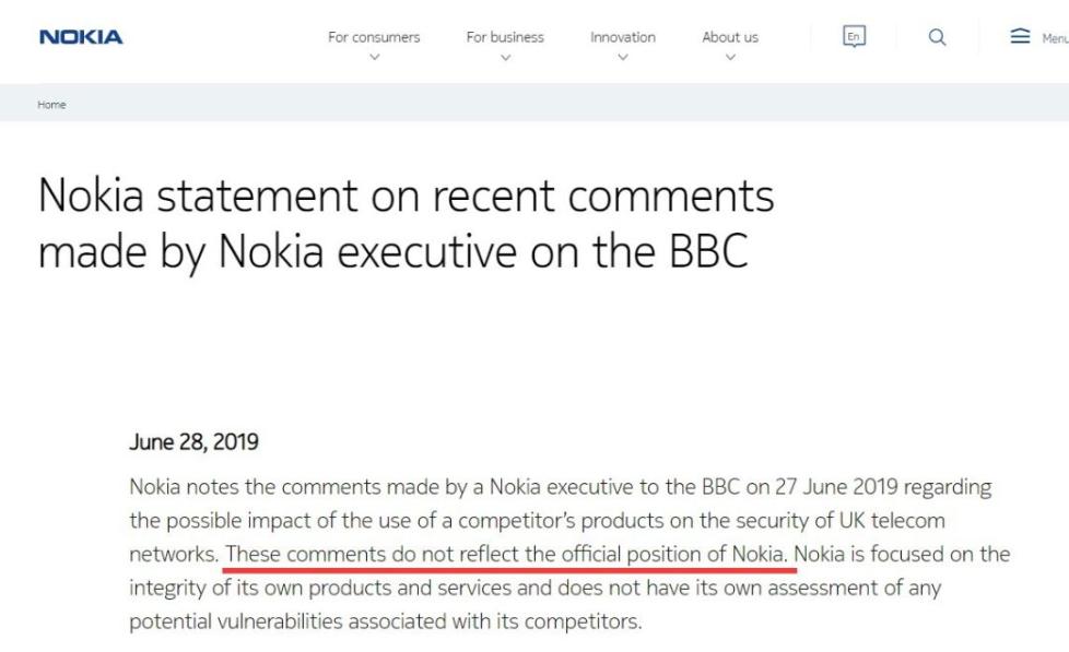 但有趣的是,在这篇报道发布后没多久,诺基亚方面就紧急澄清了这位公司资深高管的言论,在诺基亚的官网和发给媒体的回应中都强调他的言论“不代表公司的官方立场”。