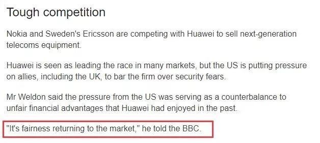 不仅如此,他甚至还表示美国对于华为的打压正令市场变得公平,因为这令华为失去了“不公平的资金优势”。