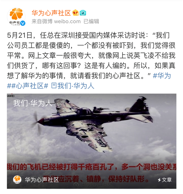 我们公司员工都是傻傻的,一个都没有被吓到,我们觉得很平常。网上文章一般很夸大,就像网上说英飞凌不给我们供货了,哪有这回事?这是有人编的。所以,如果真想了解华为的事情,就请看我们的心声社区。