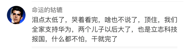 女朋友的话让我很感动。我相信有这么多华为家属在身后默默加油,默默付出,我们齐心协力,公司一定会挺过这一关,再创辉煌!
