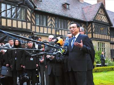 参观结束后,李克强冒着小雨向在场记者发表讲话。李克强说,波茨坦会议旧址对世界和中国都是一个具有历史意义的地方。在这里发表的《波茨坦公告》向法西斯势力升起正义的旗帜。更重要的是向世界法西斯势力发出了最后通牒。人们不会忘记,正是在向日本法西斯发出最后通牒20天后,日本宣布接受《波茨坦公告》并无条件投降,这不仅是中国人民的胜利,也是世界人民的胜利。