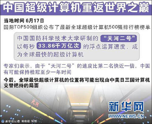 随着世界超级计算机500强排行榜6月17日揭晓,国防科技大学研制的天河二号成为全球运算速度最快的计算机。