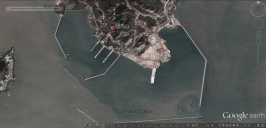 谷歌地球显示的青岛航母母港卫星照片