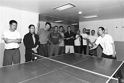 5日,“雪龙”号上的科考队员在进行乒乓球比赛。新华社发