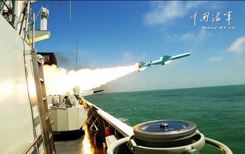 中国海军056级护卫舰发射鹰击-83反舰导弹(资料图)