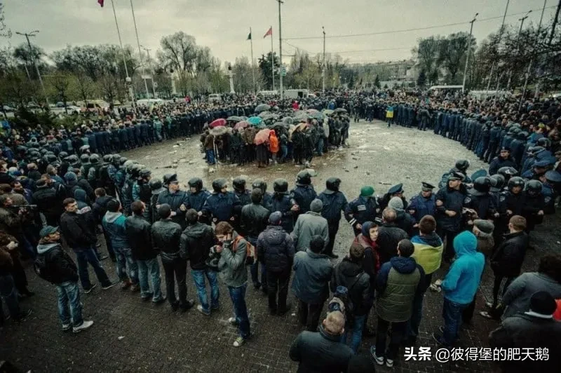2014年,被大量乌克兰族纳粹分子(极端民族主义者)团团围住的哈尔科夫市俄罗斯族人。在这