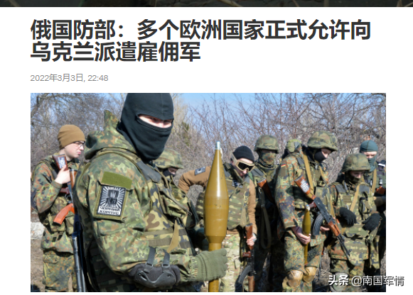 3月3日,俄罗斯国防部通报称:“所有抵达乌克兰的西方国家雇佣军都将无权获得战俘身份”。