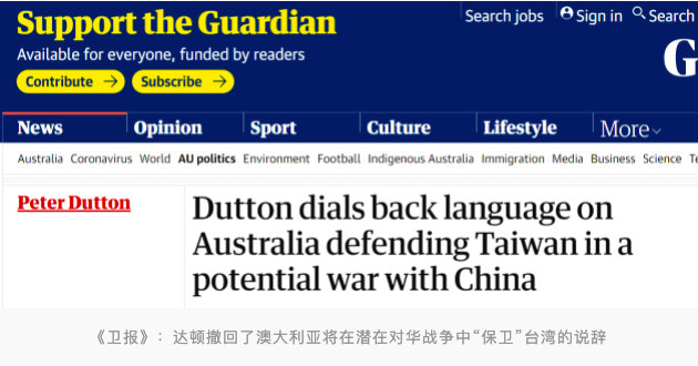 【不再出兵“保护台湾”?#澳防长达顿称要给台湾提供武器# 】被澳前总理陆克文形容为“就像一个暴躁少年”的澳大利亚国防部长达顿6日在接受澳大利亚广播公司(ABC)一档节目采访时,就台湾问题释放出复杂信息。他一方面没有重复此前有关澳大利亚将追随美国“保卫台湾”的言论,另一方面宣称,如果台海发生战事,澳大利亚可能向台湾提供武器。“达顿撤回了澳大利亚将在潜在对华战争中保卫台湾的说辞。”英国《卫报》6日以此为题报道了达顿的“一个转变”。报道称,尽管达顿声称对澳大利亚而言,“尽我们所能阻止中国在本地区的‘侵略’行为”非常重要,但他没有重复此前的表述,即如果在有关台湾问题上发生军事冲突,澳大利亚将采取什么行动。当被特别问及是否仍然认为“澳大利亚不支持美国对台行动是不可思议的”,达顿回答说:“如果保护我们的国土和盟友符合国家利益,那么我们会根据什么最符合我们的国家利益做出决定。”《卫报》评论说,这位澳防长的涉台言论似乎更加谨慎,这番最新表态意味着,他放弃了自己之前的说法,即澳大利亚将加入一场“保卫”台湾的冲突中去。澳大利亚新闻网称,达顿“软化”了对中国的言辞。达顿去年11月13日在接受采访时宣称,如果华盛顿采取行动“保卫台湾”,澳大利亚若不加入美国,是“难以想象的”。对此,澳大利亚前总理陆克文在推特上转评相关报道称,“达顿就像一个暴躁少年,热衷于与中国开战,因为他认为这让他看起来很强硬。任何猿类都会捶胸。”不过,达顿并没有放弃干涉台湾问题的挑衅言行。澳大利亚广播公司(ABC)报道称,达顿在节目中说,澳大利亚可能给台湾提供武器,以应对中国大陆未来的任何“军事侵略”行动,他还将这一行为与澳当前给乌克兰提供的支持相提并论。据ABC报道,当被直接问及“通过内部人士向台湾提供武器”的可能性时,达顿宣称:“我认为,我们会尽一切努力阻止中国(大陆)在本地区的‘侵略’行为。”达顿此前的言论遭到澳大利亚反对党工党的抨击。而针对达顿这一次的谬论,工党影子国防部长布伦丹·奥康纳6日批评说,“我们回答这些假设是完全错误的,国防部长在这方面犯了一个错误。”“在我的记忆中,在我们的历史,尤其是近代史上,没有哪位国防部长会以肯定的态度回答一个假设性的问题,这个问题就是‘我们是否发现自己卷入了一场与核大国的全面战争中’。”此前,对于达顿频繁挑衅中国的言论,中国外交部发言人赵立坚曾表示,此人身为澳大利亚政府高级官员,却满脑子冷战思维和意识形态偏见,出于一己政治私利,屡次在涉华问题上搞挑衅,发表危言耸听、令人大跌眼镜的言论,不惜将澳大利亚绑上与中国对抗的战车,可谓“司马昭之心,路人皆知”。