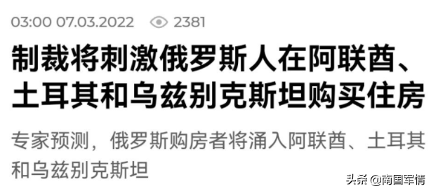 3月7日,俄罗斯媒体报道称:“俄罗斯专家透露,俄罗斯被西方制裁后,海外购房者将转向迪拜