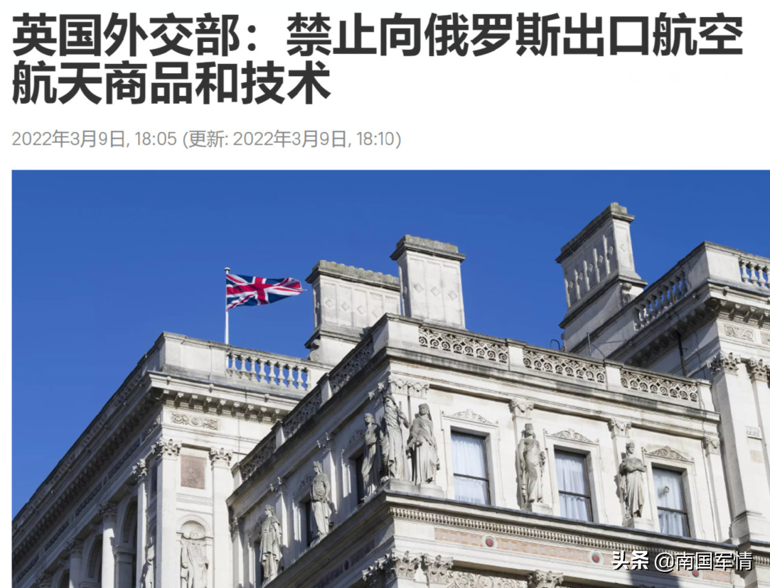 3月9日,英国外交部发表声明称:“英国禁止向俄罗斯出口航空航天商品和技术。”,英国方面