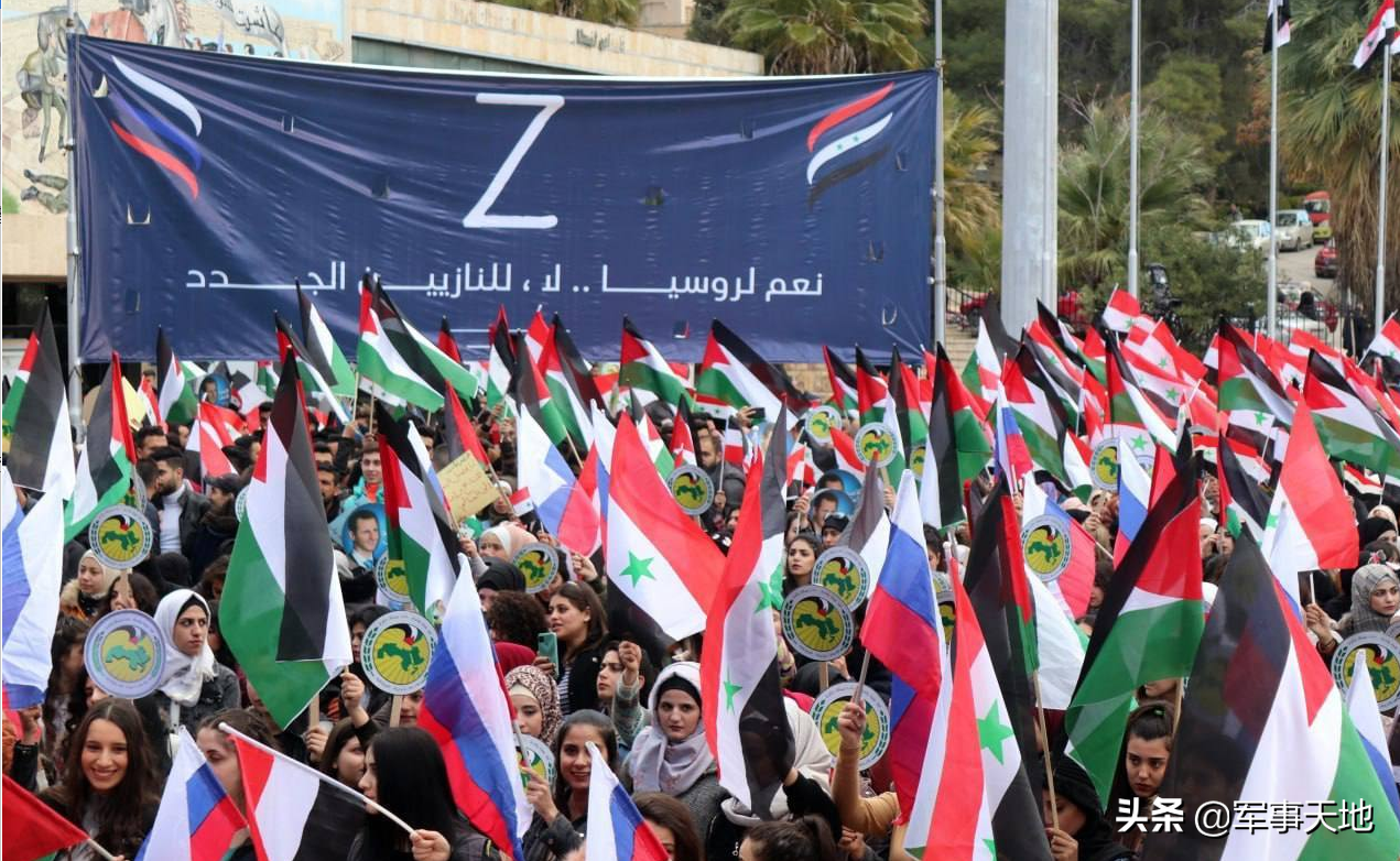 现在叙利亚政府军除了派出“志愿者”和“义勇兵”前往乌克兰参战,支援俄军。在当地时间3月15日,在叙利亚第二大城市阿勒颇,几千名叙利亚大学生们和教授举行了支持俄罗斯的声援活动!叙利亚学生们一块写着“Z”的大牌子上写着:“对俄罗斯说Yes,对新纳粹说NO !” 对于叙利亚人来说,要不是俄罗斯,叙利亚可能“亡国”了!叙利亚差点被美国毁了。美国扶植的武装分子,直接占领了霍姆斯、阿勒颇等大城市。关键时刻,俄罗斯伸出了援手,否则叙利亚就成武装分子大本营了。2010年前,叙利亚老百姓安居乐业,2011年叙政府军坦克、步兵战车就要和叙利亚武装分子进行巷战,周围早已残垣断壁!叙利亚也是被美国毒害的国家。所以叙利亚要和俄罗斯联合起来打击美国,全球反击美国的浪潮很快就会到来!#叙利亚#