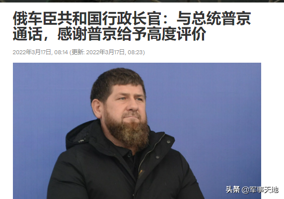 3月17日,俄罗斯媒体报道称:“俄罗斯总统弗拉基米尔普京请车臣领导人卡德罗夫向参加乌克