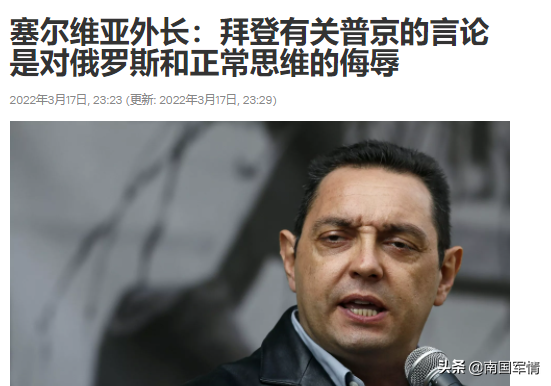 塞尔维亚外长:“拜登有关普京的言论是对俄罗斯和正常思维的侮辱”!3月17日,塞尔维亚外