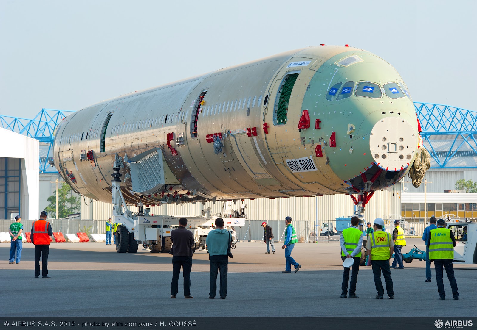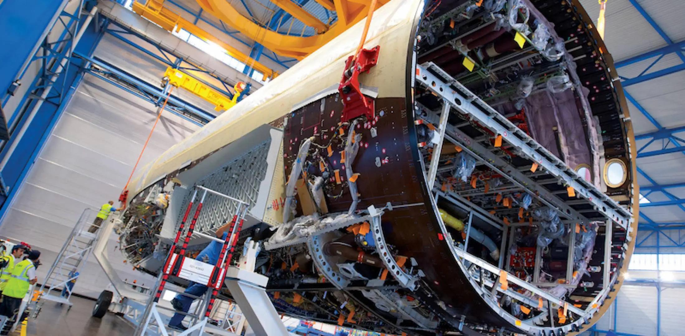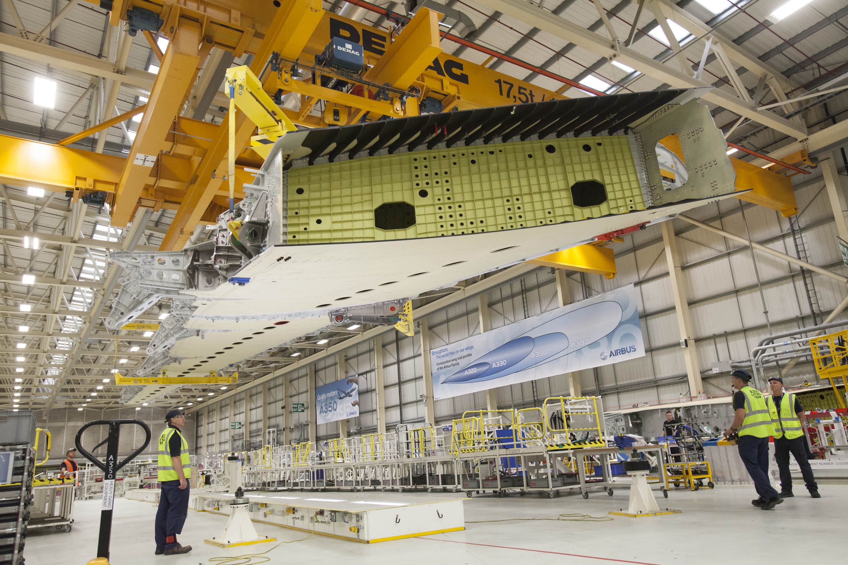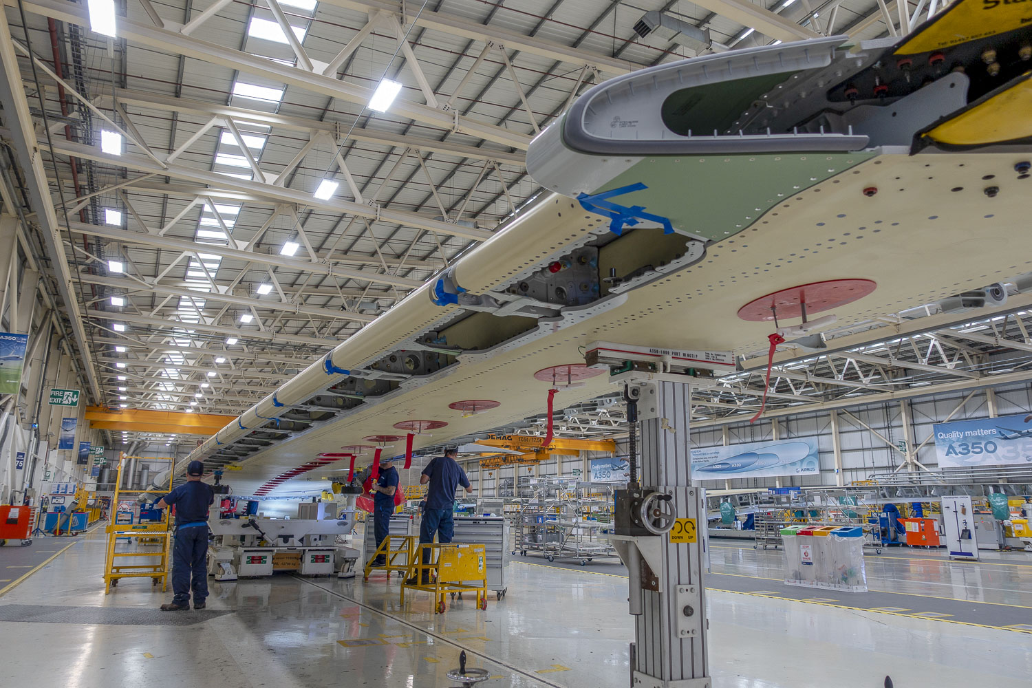 空中客车公司A350XWB系列客机工厂生产线里,可以很直观的看到各类飞机部件加工组装的画面