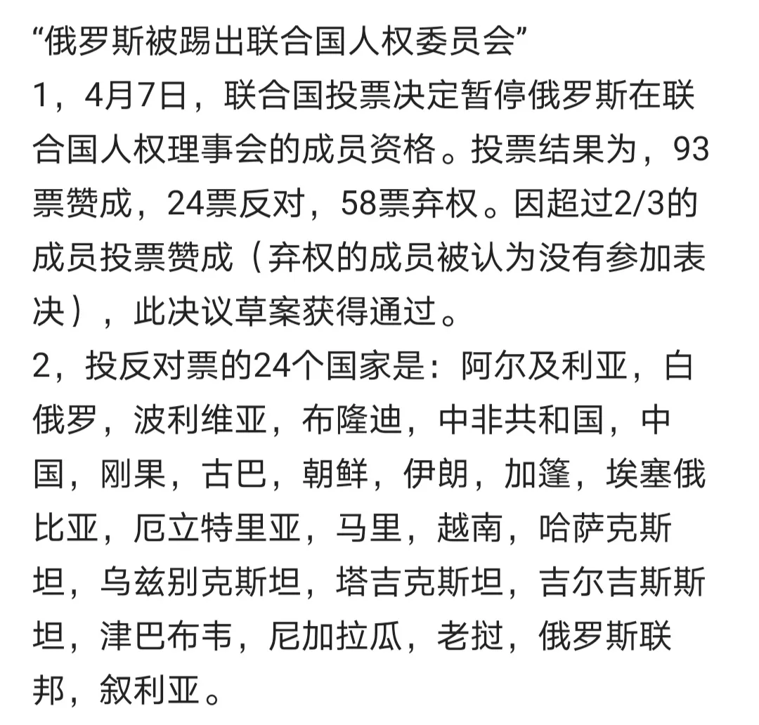 俄罗斯被踢出联合国人权委员会,联合国投票结果已出,谁是真朋友,谁是反动派,谁是墙头草