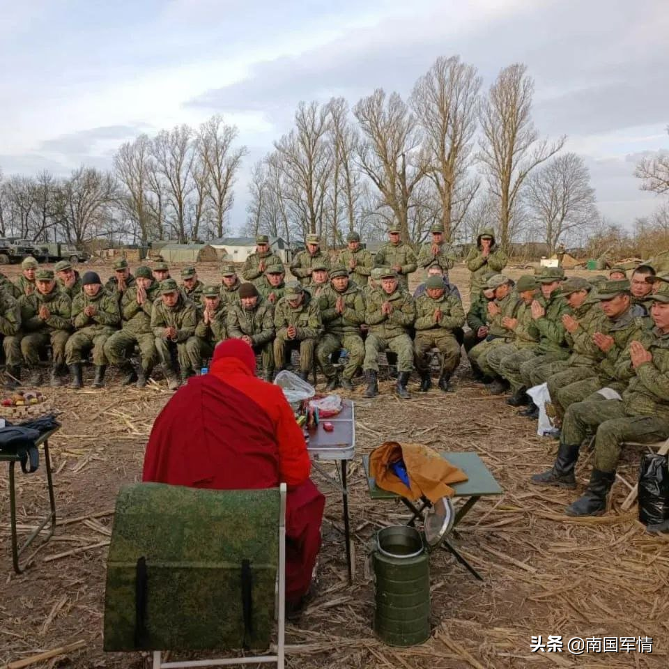 来自远东、西伯利亚地区俄军蒙古裔士兵,在听喇嘛的“教导”,这些俄军蒙古裔士兵都是信奉藏传佛教,这些人就是迁徙到俄罗斯的蒙古人后代,在俄罗斯叫卡尔梅克人,还有一部分叫布里亚特人,俄罗斯人还有更简单的叫法:统称这些人为“蒙古人”。卡尔梅克人就是“东归英雄”的土尔扈特部人,渥巴锡没带出来的土尔扈特部族人。俄罗斯的军队真是乱七八糟。每支部队都是一个地方的兵,俄罗斯有近两百个民族,有什么奇怪的传统感觉都挺正常的。#俄军动态#