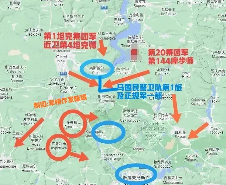 俄军又包围乌军1000人!在伊久姆以东的奥斯基尔,俄军包围乌克兰国民警卫队第1旅,和部分
