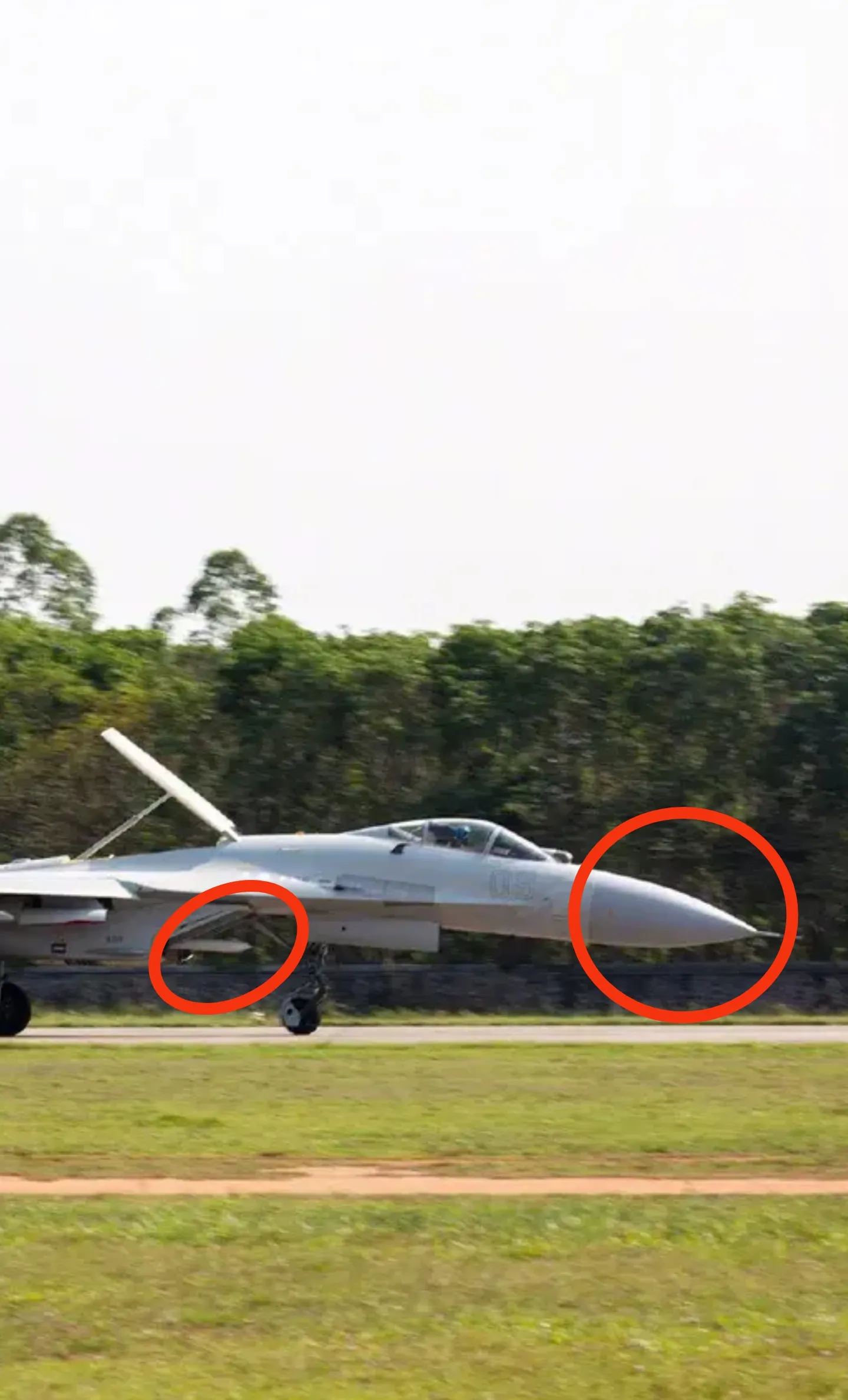 央广不小心泄了,歼11B中期改进型。外表的机头雷达罩涂装由深色换为浅色,里面应改装为有源相控阵雷达。发动机为太行WS10B。机腹下挂的弹又粗又长,弹头已接近前起落架舱,可能是新型远程空空弹PL-XX。