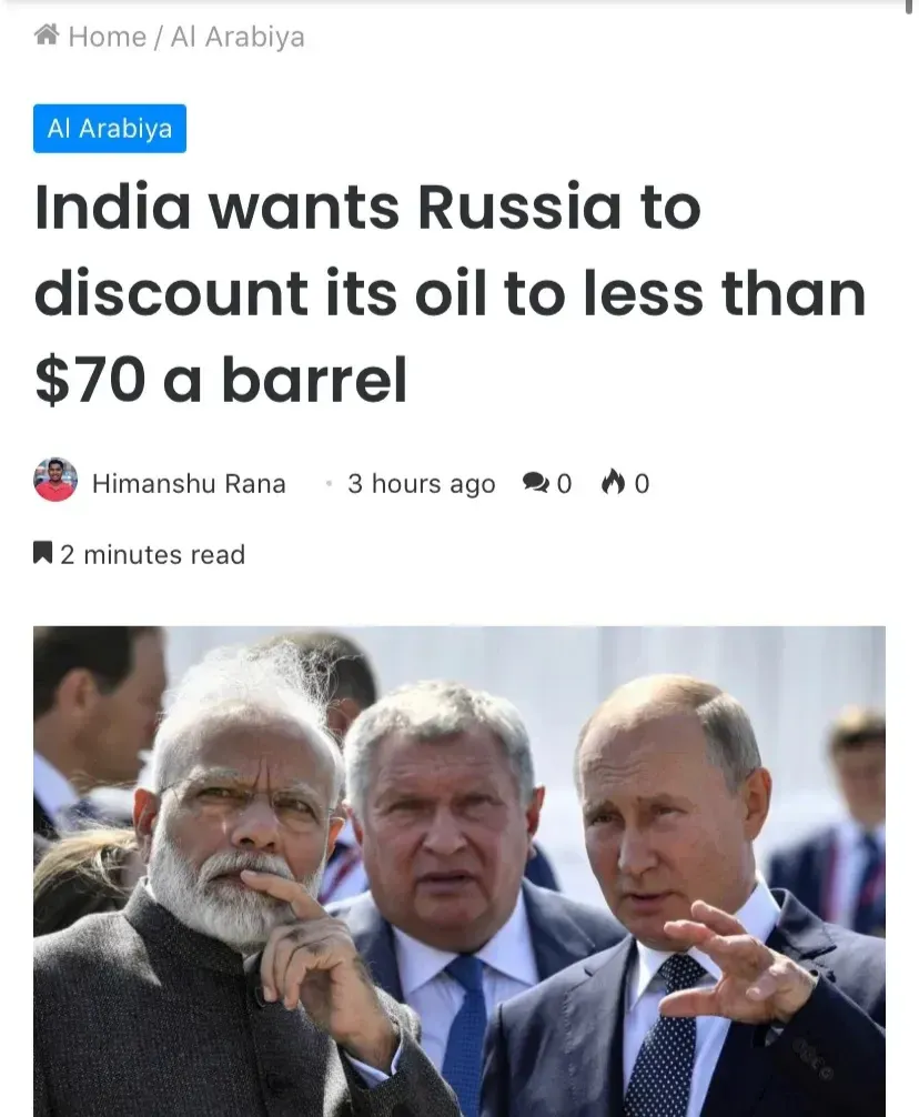 印度希望俄罗斯石油提供更多的折扣?近日,莫迪明确表示,希望俄罗斯石油价格下调到70美元