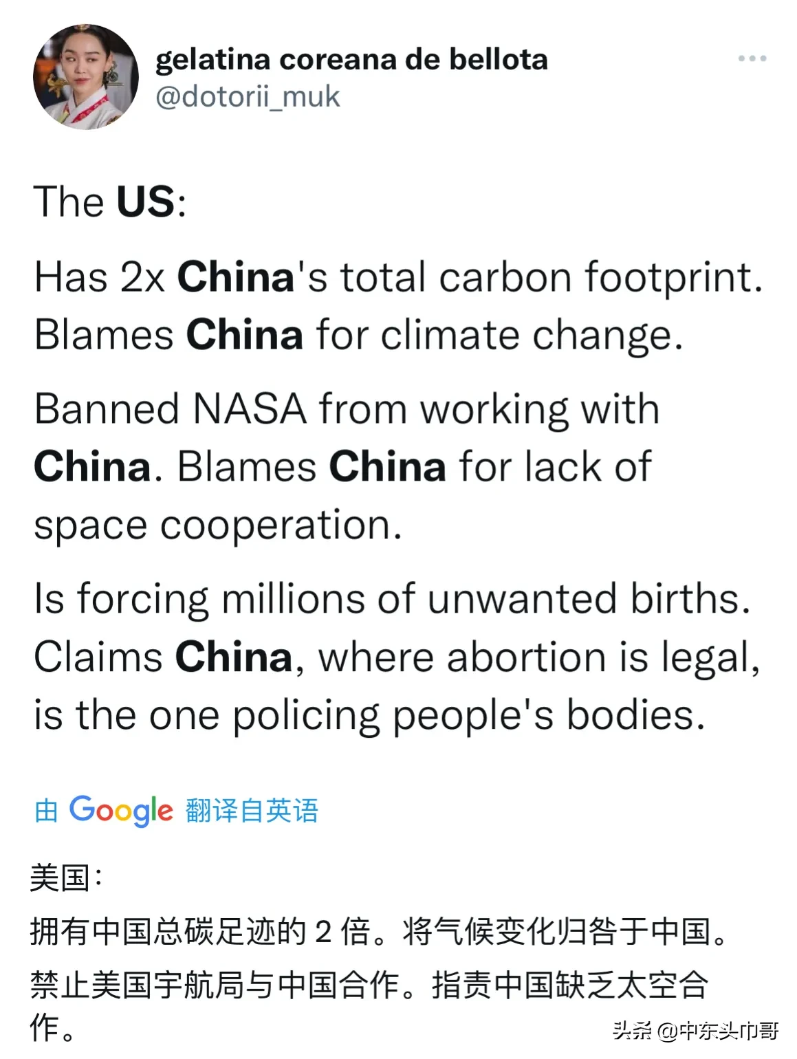 外国朋友看得清楚,美国“掩饰”自己糟糕的人权记录的方式是抹黑攻击中国。美国历史上总碳排放是中国的2倍,却将气候变化归咎于中国。美国禁止美国宇航局与中国合作,却指责中国缺乏太空合作。美国几十年来一直将制造外包给中国,却抱怨一切都是在那里制造的。美国对自己的公民使用监视技术,却说中国这样做是不道德的。美国像对待外国人一样对待华裔美国人,当他们决定代表中国参加奥运会时,却在大喊大叫。
