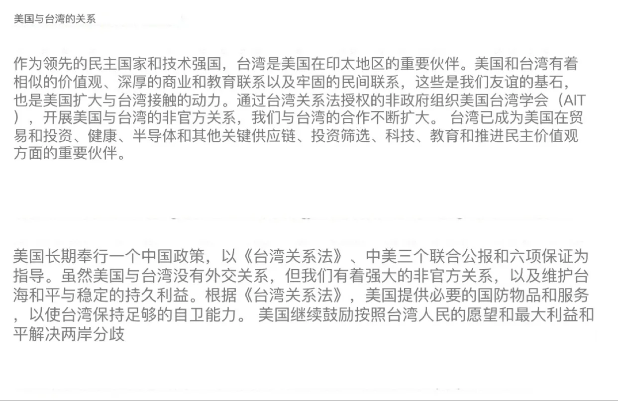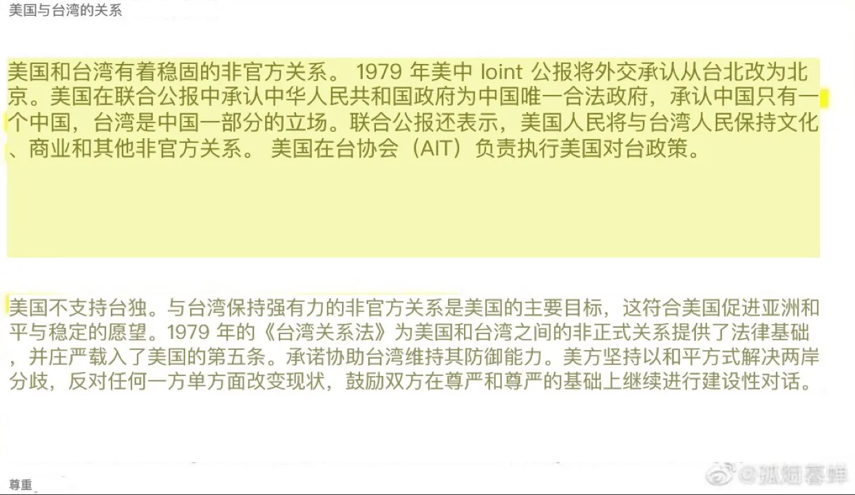 5日,美国国务院发布了新版的美国与台湾关系简报,删除了“中华人民共和国是唯一合法政府 2022-05-10 08:53:37 刘庆彬 5日,美国国务院发布了新版的美国与台湾关系简报,删除了“中华人民共和国是唯一合法政府,且台湾属于中国”,以及“不支持台湾独立”的相关条款。 台湾 美国 美国国务院 台湾独立 狂踩 (0) 0% 点赞 (1) 100%