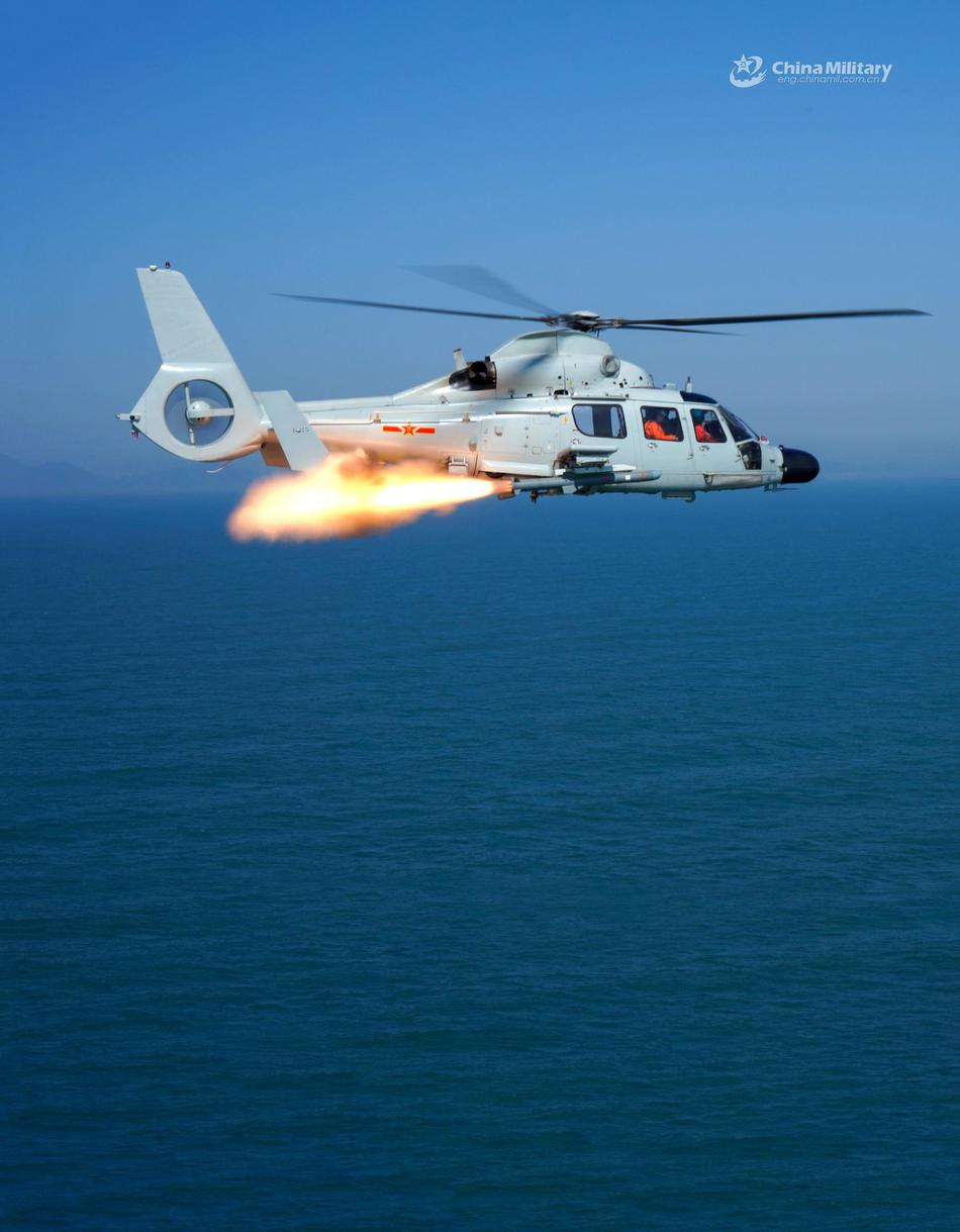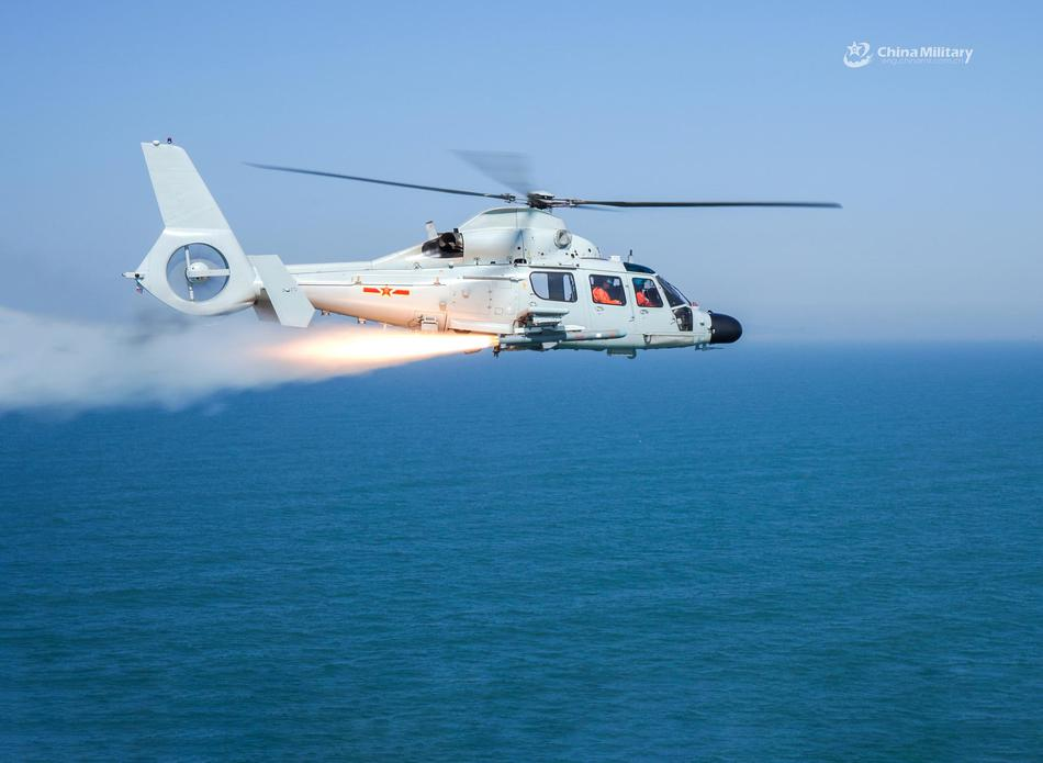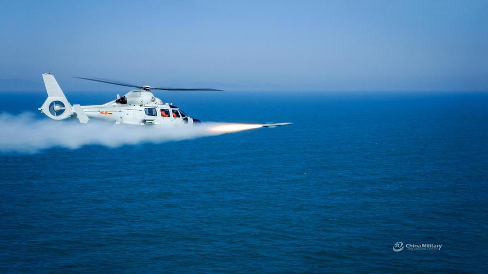 小艇克星,打击导弹艇和各类快艇的利器,东部战区舰载直升机挂载的反舰导弹实弹训练。(图