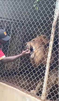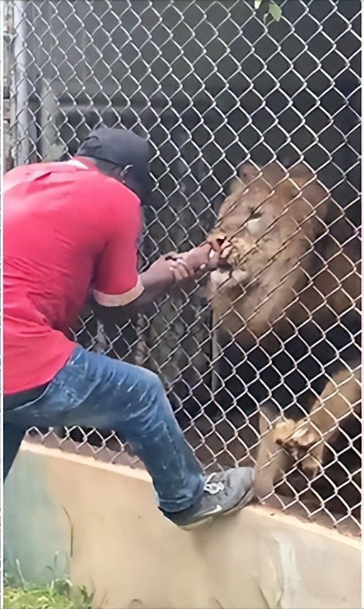 【牙买加动物园员工向游客示范“如何挑逗狮子”,竟被咬住手指,拔出手指只剩白骨!】21日,牙买加媒体报道,动物园员工向游客示范“如何逗狮子”,结果被咬。5月20日,牙买加圣伊丽莎白区的动物园里,一群游客逛完动物园,正准备离开。工作人员亲切地向他们最后示范一下如何正确地逗狮子。工作人员大胆地将手伸进狮子笼子,用手指频繁触碰狮子锋利的牙齿和嘴唇。这头雄狮一开始不耐烦地接受工作人员的“骚扰”,但终于忍不住了。雄狮用极快的速度咬住了工作人员的手指。工作人员顿时慌了神,用尽全力挣脱,用脚抵在墙上用力向后蹬,终于拔出了手指,但手指只剩一根白骨。旁边的游客看得目瞪口呆。他们起初以为工作人员假装被咬到,但后来看到白骨之后,游客们都吓得尖叫。牙买加防止虐待动物协会表示将调查此事。这真是血的教训。这名男子身为动物园工作人员,违反动物园规定,带头挑逗狮子,最后受到雄狮的“惩罚”。该工作人员过分自信,触碰到狮子的忍耐极限,酿成惨剧。牙买加防止虐待动物协会还准备调查此事,似乎该男子除了没了手指以外,还要接受其他处罚,这代价太大了。这种危险行为可千万不能做。图为当时画面,图6是新闻报道