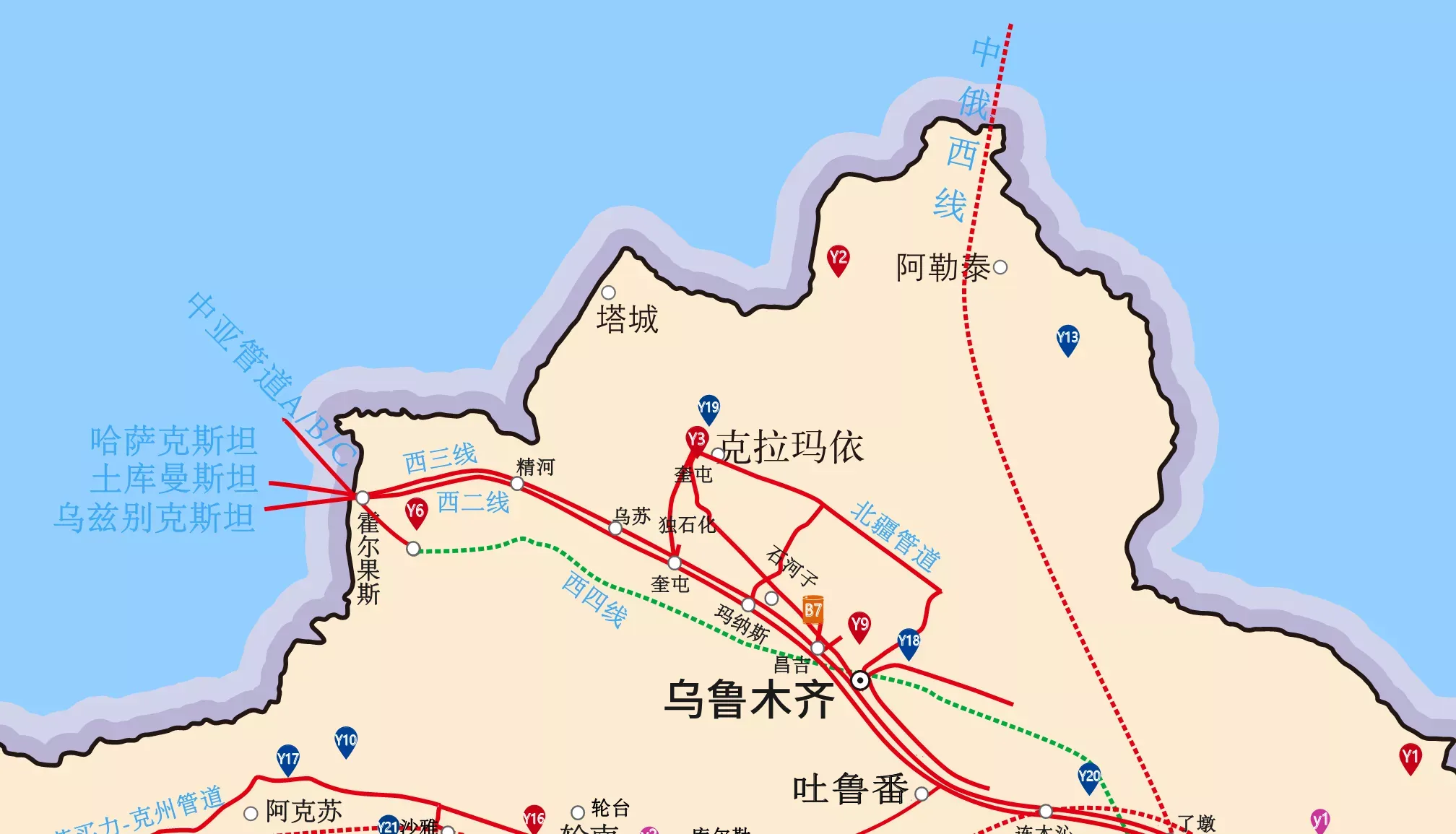 新疆的重要你肯定想不到了,看看铁路和天然气管道! 新疆地处欧亚大陆中心,东西最长2000