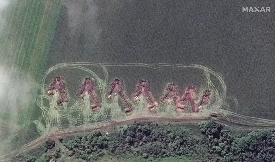 俄军大举突进顿巴斯核心区!北大门红利曼被攻克后,俄军中部军区至少5个营级战斗群南下,逼近核心枢纽——斯拉维扬斯克。俄军中部军区第2集团军、第41集团军,以及民兵下属车队,大量出现在红利曼南下公路上,包括平板拖车上的T-72B3坦克,MTLB装甲牵引车,也有民兵用的D-20加榴炮。俄特种部队也自丛林间开始渗透。另外俄军已在红利曼南郊,设置大量火炮阵地。此地到斯拉维扬斯克北部,不过15公里左右,正是152毫米口径火炮最大射程的一半,便于大量重炮发挥威力。