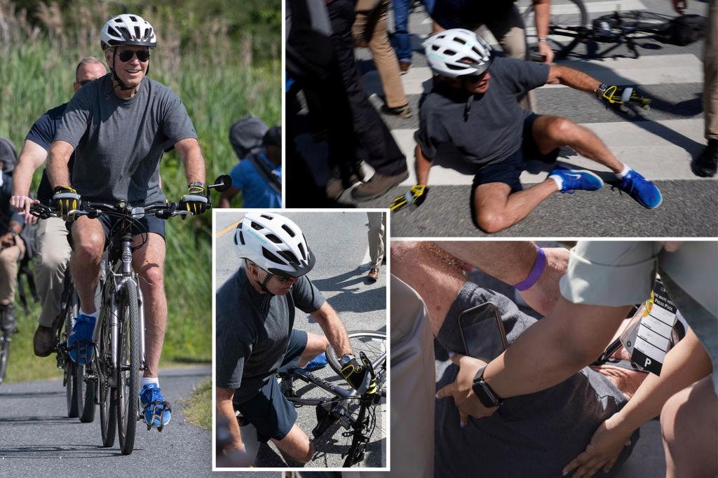 拜登今天骑自行车,bia,摔了个人仰车翻(2)