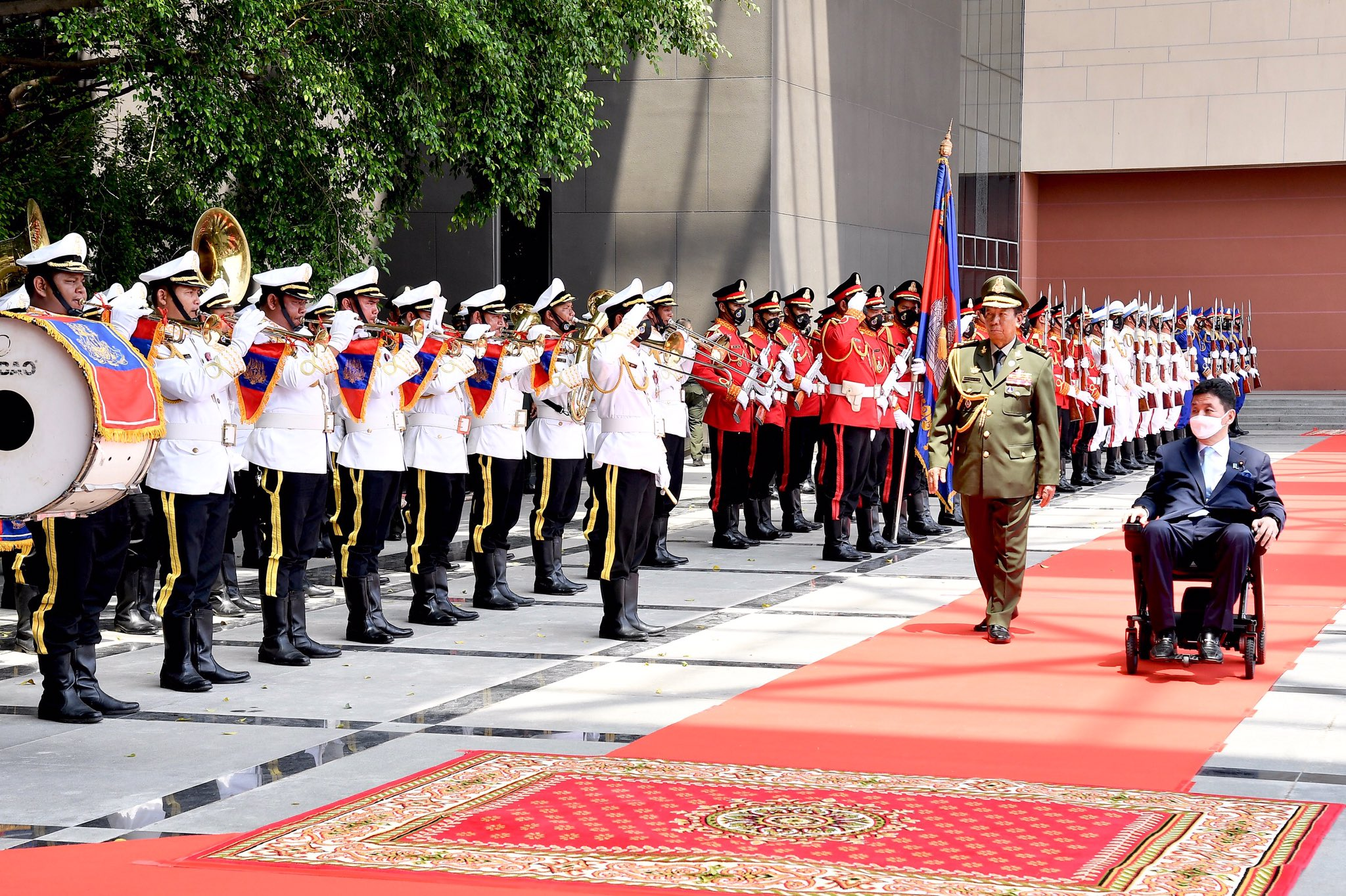 日本防卫相全程坐轮椅访问柬埔寨?外界对其身体状况表达疑虑根据外媒的报道,在香格里拉对话上,日本防卫大臣岸信夫在和中国国防部长魏凤和会面时全程坐着轮椅进行会谈。而两个星期后,岸信夫访问柬埔寨时仍旧全程坐轮椅移动,站着必须得拄拐杖。外媒不由得对这位日本防卫相的身体健康情况表达了怀疑,连路都走不了,那么他还能够胜任日本防卫相的职务吗?