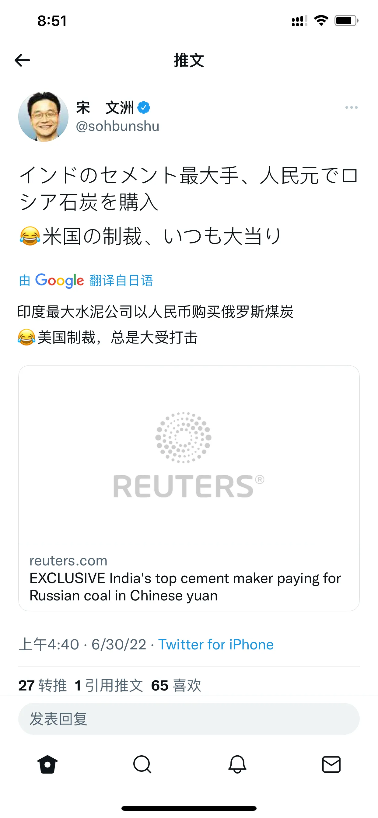 印度最大水泥公司以人民币购买俄罗斯煤炭美国制裁,总是中大奖 2022-06-30 09:17:00 刘庆彬 宋文洲:印度最大水泥公司以人民币购买俄罗斯煤炭美国制裁,总是中大奖 俄罗斯 印度 美国 宋文洲 狂踩 (0) 0% 点赞 (10) 100%