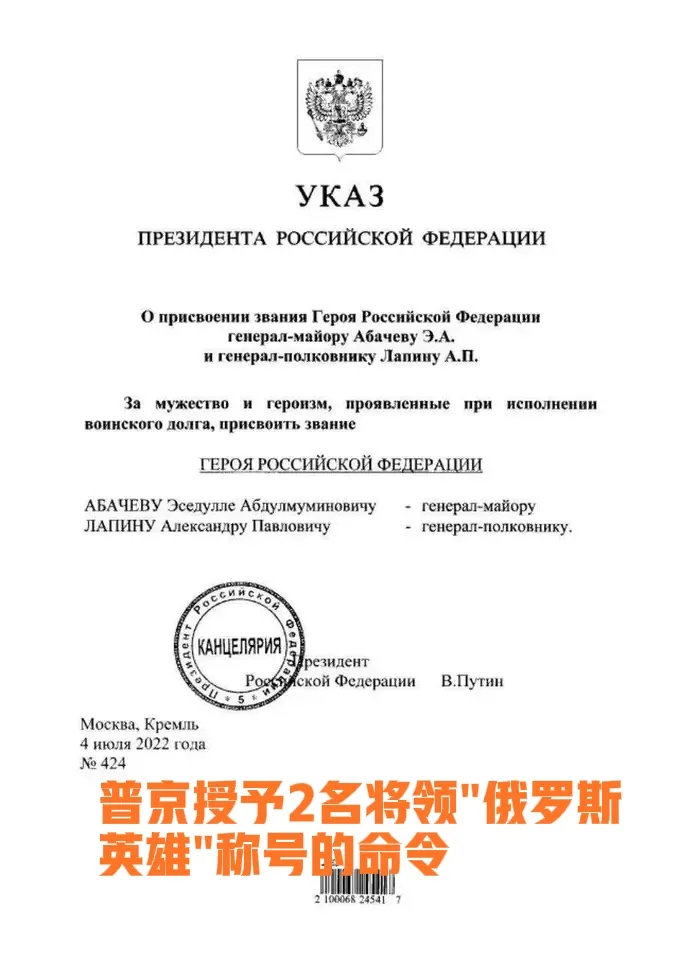 普京亲自点兵出征!俄总统普京7月4日下令,攻占整个卢甘斯克的中部军区和南部军区部队,应转入休整,下一步作战主要依靠远东和西部军区部队。普京还下令,授予2名将领&34;称号——中部军区司令亚历山大·巴甫洛维奇·拉平上将,南部军区第8集团军副司令埃塞杜拉·阿卜杜勒·穆米诺维奇·阿巴切夫少将。在之前的北顿涅茨克-利西昌斯克战役中,中部军区所属第2、第41集团军和第90师等部表现优异!而在波帕斯纳亚突破战中,第8集团军更是发挥中坚作用!
