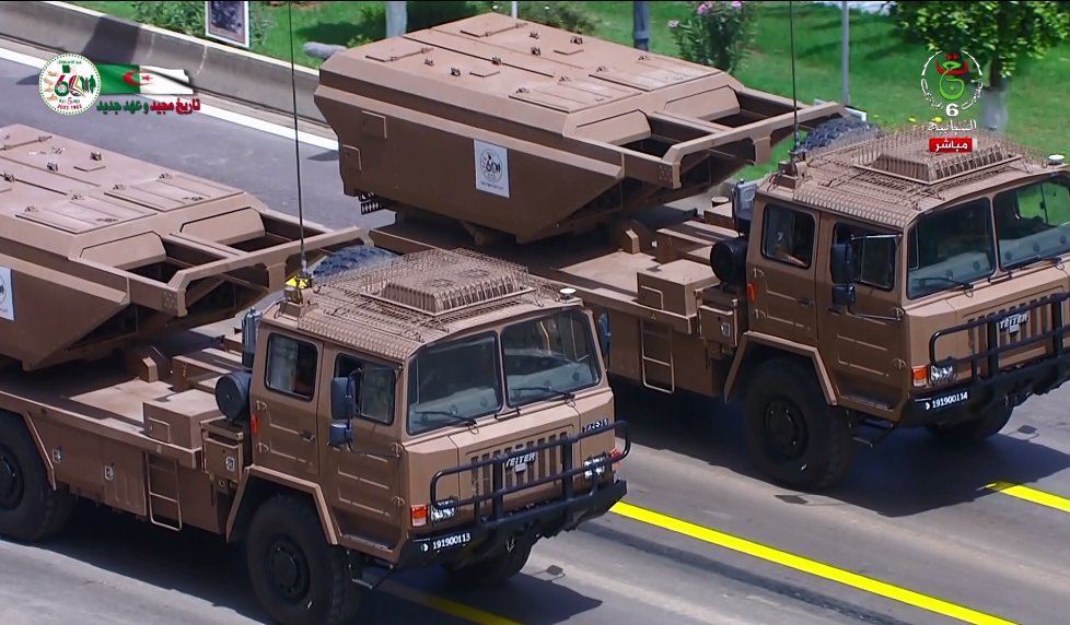 阿尔及利亚在纪念独立60周年阅兵式上展示的中国武器。包括彩虹-4无人机、SM-4型120毫米自行迫击炮、PL-45型155毫米自行榴弹炮,以及中国产SR-5模块化火箭炮(驾驶室顶部的空调非常惹眼)。不过相比阿尔及利亚装备的俄式武器,中式武器无论是在型号,还是数量上都存在较大差距,中国的军工人还需要加油!