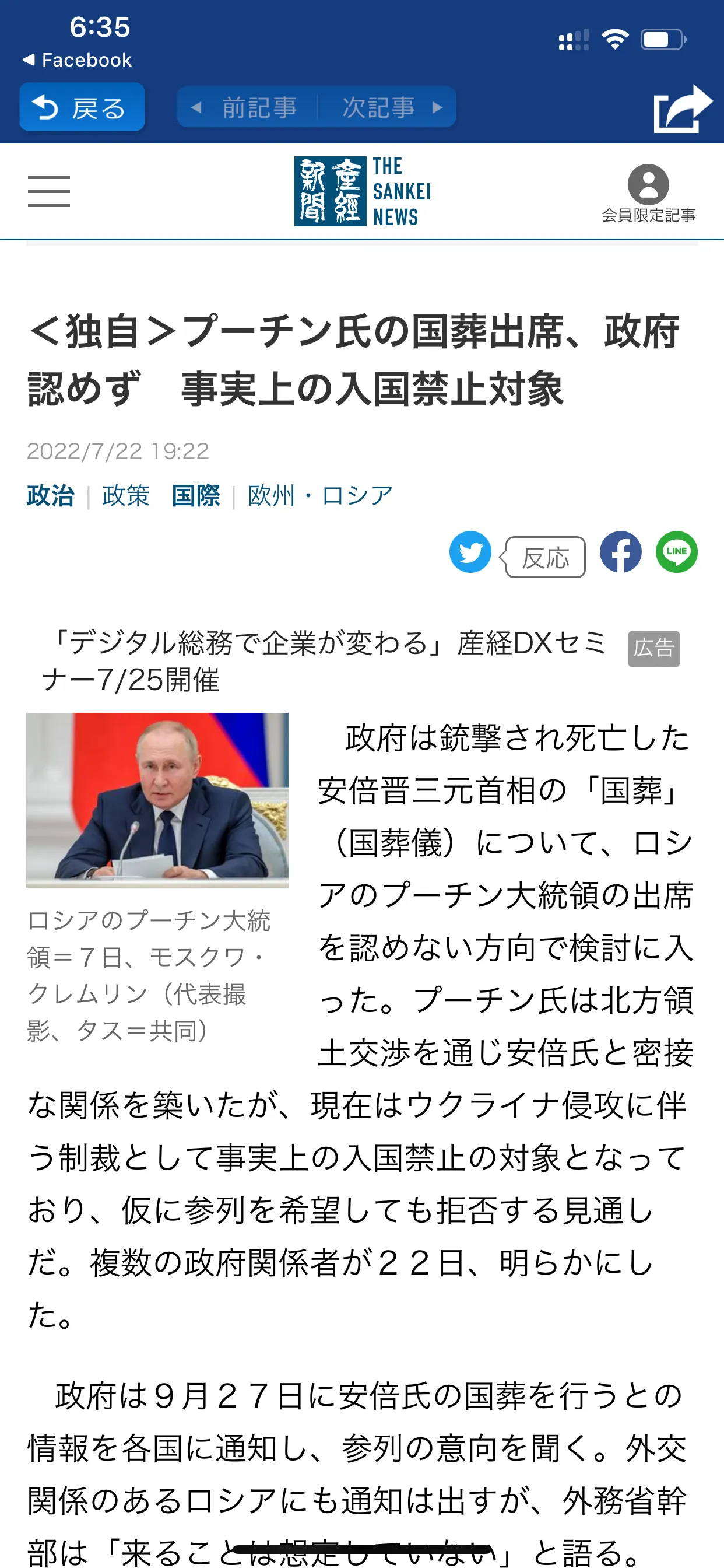 日本政府刚刚决定! 即使普京要求来日吊唁安倍晋三也不接受