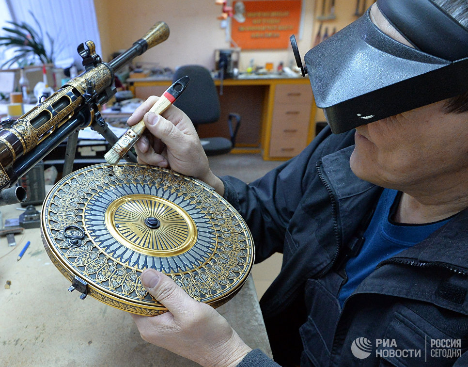 探秘俄军奖励武器生产厂:兹拉托乌斯特武器厂。该厂的产品工艺精美,精雕细刻如绣花,大量采用镀金工艺。奖励武器是给那些军功显赫的将士颁发的定制武器,包括冷兵器和热兵器。武器及其配饰上通常镌刻有受奖者的姓名和主要战绩。(图片来自网络侵删)