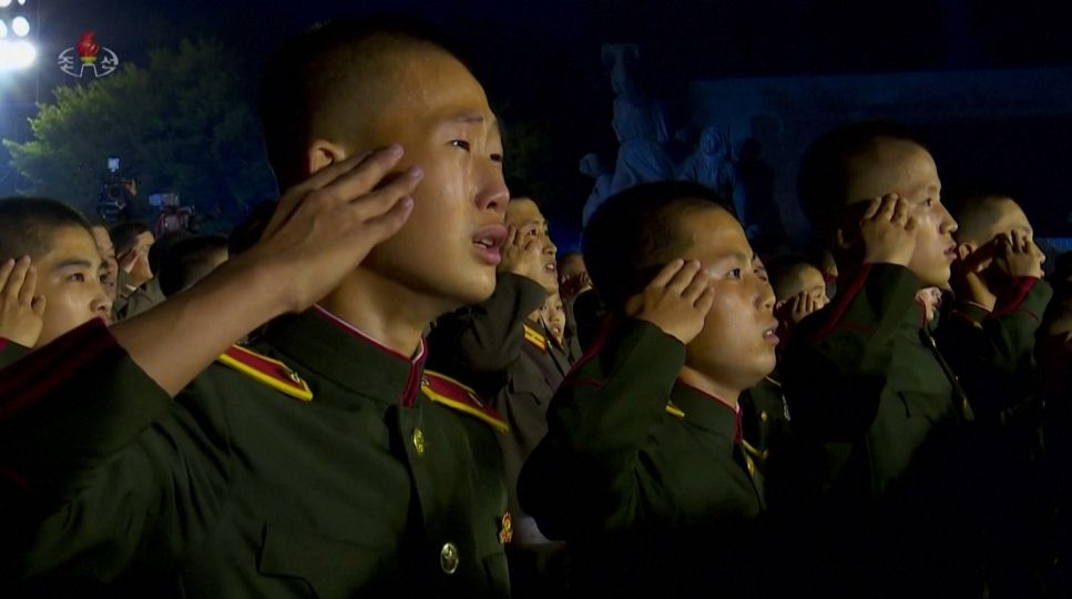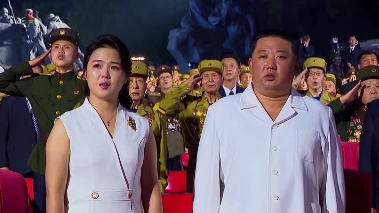 【朝鲜李雪主战胜节唱国歌时激动落泪!】1953年7月27日,《朝鲜停战协定》被签署,朝鲜将7月27日定为战胜节,每年都会举办大型庆祝活动。今年7月27日,朝鲜举办战胜节69周年纪念活动。27日,朝鲜领导人金正恩与李雪主参加晚间庆祝活动,在唱国歌环节,李雪主情不自禁激动地落下眼泪。泪珠挂在她的脸上,可见她情绪非常激动。她身后很多年轻士兵和退伍老兵,情绪同样激动,不少人唱国歌时流下热泪。朝鲜战争结束已经69年,但由于美国仍然不愿意签署《和平协定》,朝鲜战争一直处在停战的状态。这让朝鲜一直感到不安。美国表面上维护“和平”的国家,却迟迟不愿签署《和平协定》,其居心叵测。