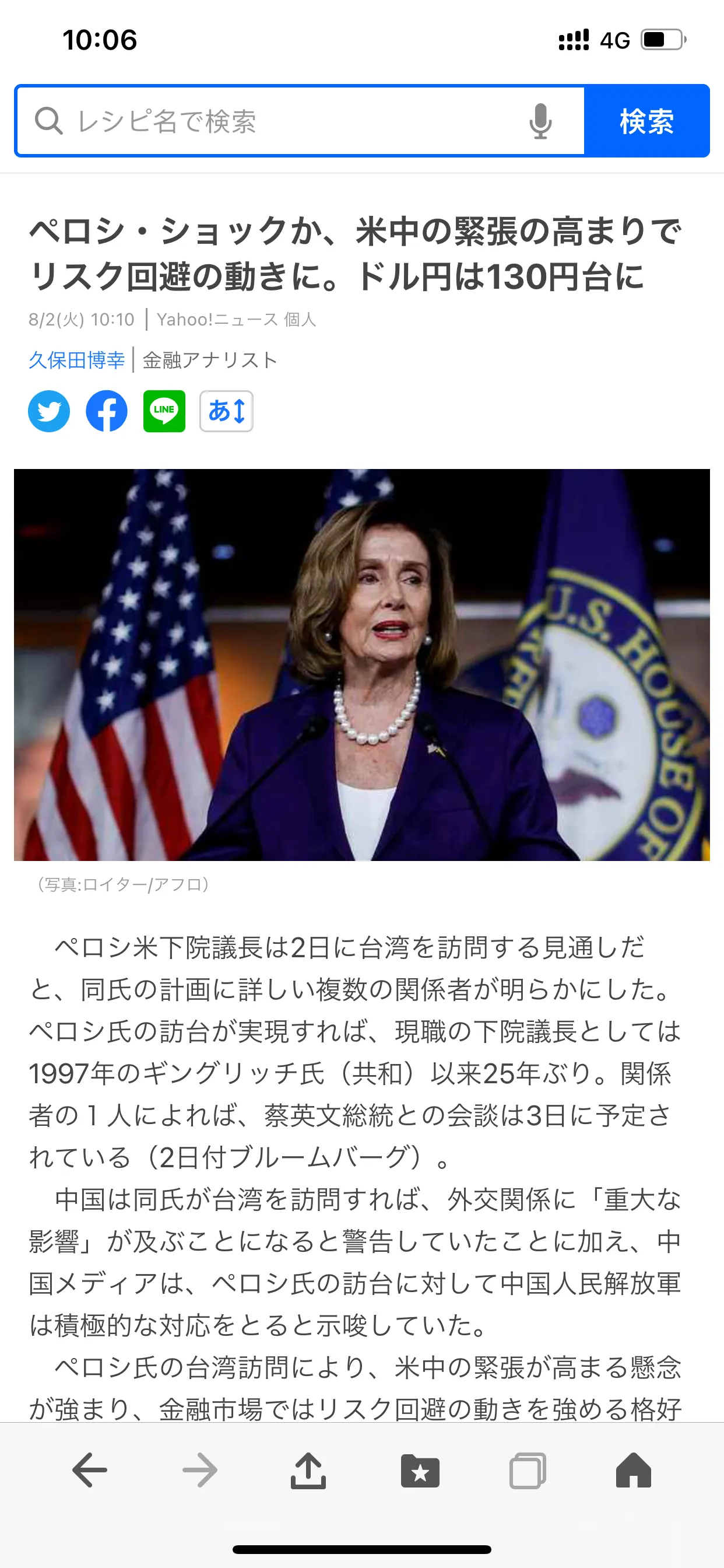 佩洛西访台?!美元兑日元大跌!据日媒,佩罗西计划访问台湾后,对中美紧张局势日益高涨的担忧日益增强,金融市场陷入了回避风险的举动中。已经在昨天的美国市场中,美债也出现了回避风险的举动,美国10年债券收益率从前一天的2.65%下降了2.57%。而且到了2天的东京时间,佩罗西的台湾访问计划也带来了现实感,美国10年债券收益率进一步下降到2.54%。在外汇市场,除了回避风险导致的日元购买之外,由于美国长期利率下降的美元贬值,日元买入美元的压力也加大了。结果,时隔约2个月,美元兑日元已经跌至130日元左右。