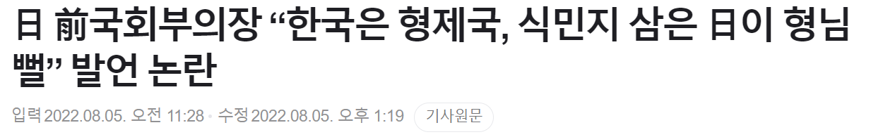 【“日本曾殖民韩国,算是韩国的大哥!”日本前众议院副议长的言论引起韩国愤怒!】5日,韩国媒体报道,日本前众议院副议长称,日本相当于韩国的大哥后,引发舆论的愤怒。5日,81岁日本前众议院副议长自民党议员卫藤征士郎宣称,“韩国在某种意义上是兄弟国。确切地说,日本是韩国的大哥。”他解释说:“日本过去曾殖民韩国。所以考虑到这一点,日本在某种程度上说是韩国的大哥。”当被问及“韩日关系是否对等”时,他回答说:“日本国民认为美日关系对等吗?我不这么认为。同样,我不认为“韩日关系对等”。日本应该始终站在领导的立场上。”今年5月9日,在尹锡悦总统就任仪式上,卫藤征士郎还作为日本国会议员庆祝使节团访韩,与尹锡悦会面。卫藤征士郎在日本殖民韩国时期的1941年出生在韩国的全罗南道,是日本众议院13届议员。对此,韩国的国民力量党议员李阳洙指出:“这是非常不恰当的发言,他必须要向我们道歉。韩日两国要想增进友好关系,政治家们的言行必须更加谨慎。”日本曾侵占朝鲜半岛实施殖民统治,不但掠夺大量自然资源,还实施民族同化教育,强征劳工和慰安妇。但一些日本政客从不反省侵略罪行,反而不断美化。这名政客竟然把殖民历史当做炫耀的事情来讲,还自称是韩国的大哥,这体现了日本政界长期将韩日关系解释为“上下级关系”的观点,这怎么能让韩国人接受?图1是卫藤征士郎,图2是韩国媒体报道