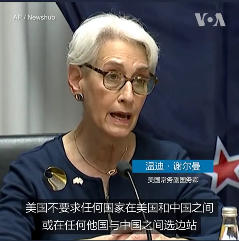 正在新西兰访问的美国常务副国务卿温迪·舍曼8月9日说,美国不会要求任何国家在美中两国之