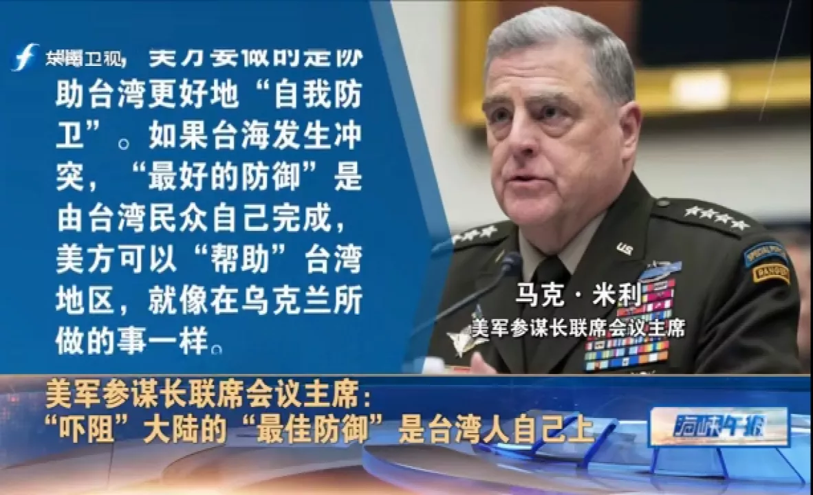 美参联会主席米利:一旦两岸冲突,美军既不会登岛,也不会直接干预,但会提供武器,台湾只