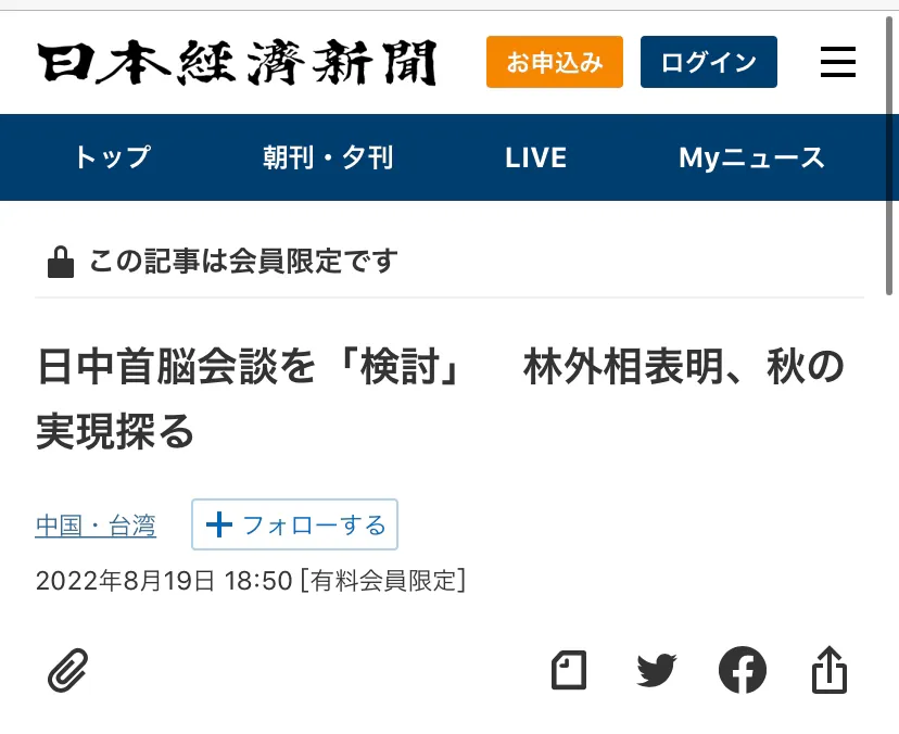 日本外相林芳正昨天(8月19日)在接受日经新闻专访时说,“希望日中双方能把领导人会晤安排在9月改善关系,并庆祝日中外交关系正常化50周年。”林芳正还强调:“日本一向对对话抱持开放态度。”此外,8月17日,杨洁篪主任在天津同日本国家安全保障局长秋叶刚男进行了七个小时的会谈。[机智]评几句:在日方大放厥词之后,中方取消了中日外长在柬埔寨的面对面会晤。但是下个月的29日,是中日建交50周年。日本方面可能希望利用这个契机,一定程度改善对华关系。