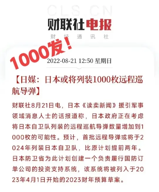 日本将装备1000发巡航导弹,欲回归冷战对抗!日本最近热炒的&34;,实则右倾复活军事,准备让驻日美军部署导弹,自己还要研发部署导弹,要把自己牢牢绑在美国战车上对抗中国!太阳下无新鲜事,日本回归冷战,破坏地区稳定和世界和平,不一定能损别人,但必然害己!