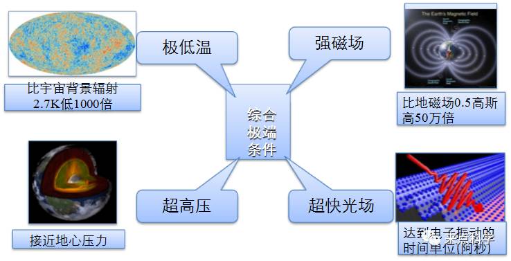任何物质都是在一定的物理条件下形成的,通过使物理实验条件到达极端状态,可以形成许多在常规物理条件下不能得到的新物质和新物态,发现科学新现象。