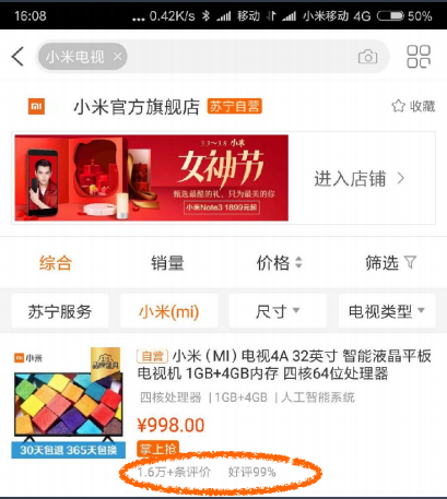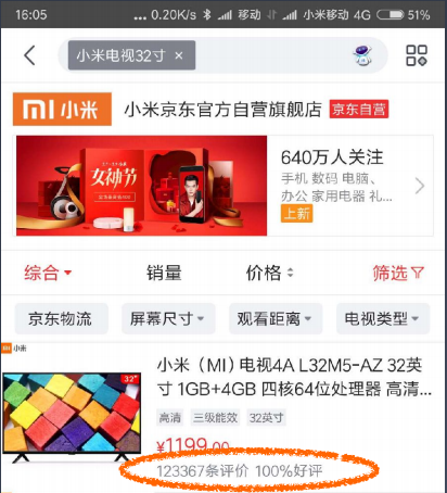 记者翻看各大电商平台的评价,小米电视4A 32英寸在苏宁易购的好评率达到了99%,京东商城甚至达到了100%。而且根据记者的调查,小米这款电视的返修率控制到了0.43%,远低于行业2.5%的平均水平,好品质大幅领先行业。不放过任何产品的品质把控,也是这款产品取得成功的关键。
