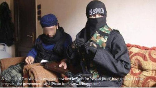 据美国《纽约每日新闻》21日报道,突尼斯官员披露,不少去叙利亚“性圣战”的突尼斯妇女腆着大肚子回国了。
