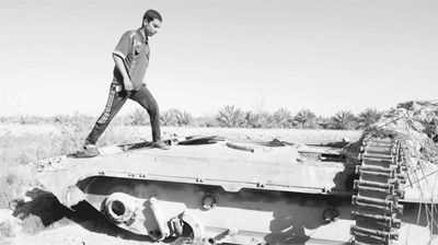 伊战已爆发近11年,伊拉克依然挣扎在暴力和政治危机之中。图为在伊拉克卡尔巴拉,一名男子站在伊战时被美军摧毁的伊拉克坦克上。