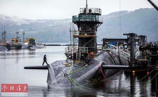 英国皇家海军前卫级核潜艇“警惕”号,已停靠在克莱德皇家海军基地。“警惕”号是英国4艘可携带核弹头的潜艇之一。