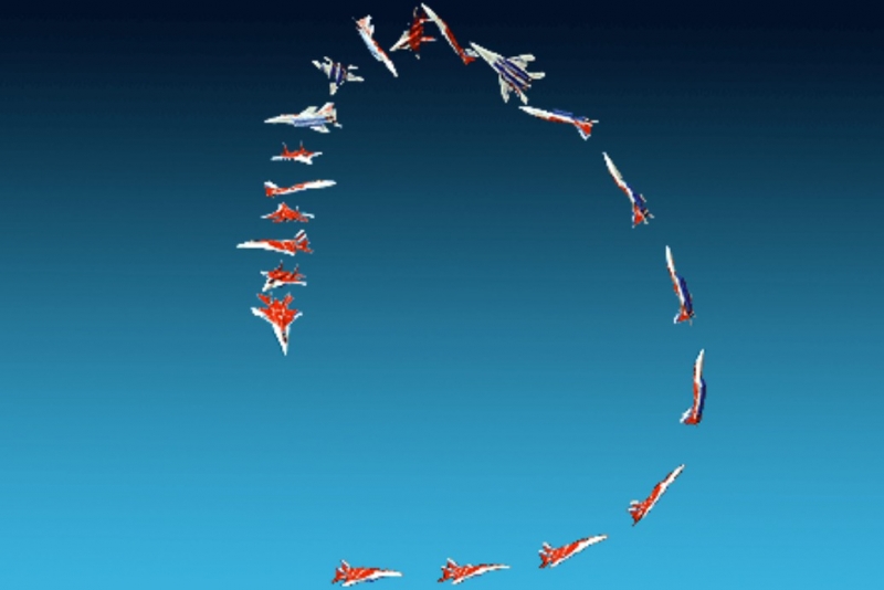 “落叶飘”不同于“眼镜蛇”和“钟摆”,那是不是意味着人们对过失速机动战术价值要重新考虑呢?即使不推广到一般结论,就具体的“落叶飘”而言,这从减速的垂直爬升开始,拉一个小半径筋斗后,在低速飘落中蹬舵、慢速转向。从拉起开始,整个动作完成需要约20秒的时间,扣除爬升约5秒,小筋斗约5秒,半圈“落叶飘”也需要约10秒。